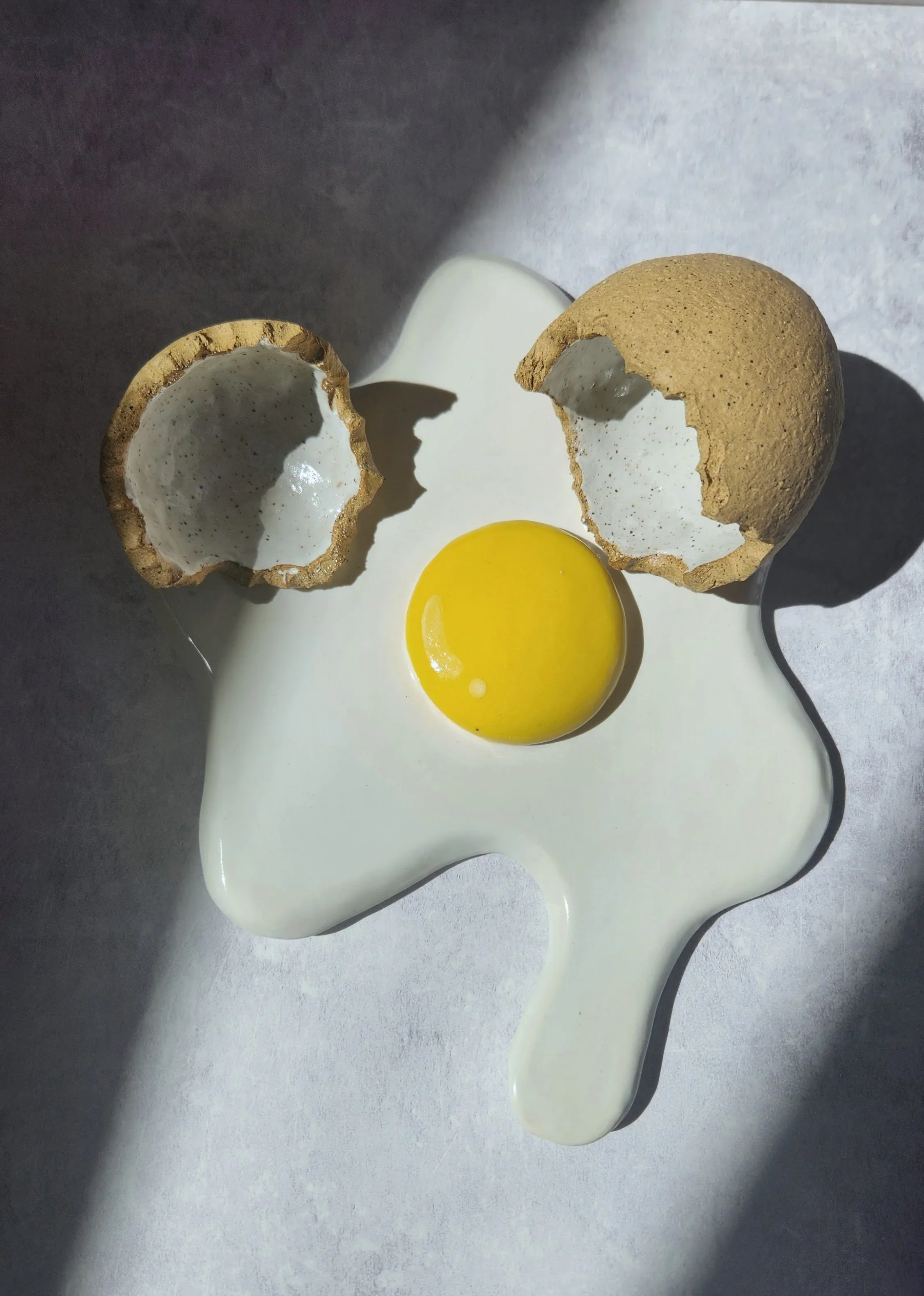 My ceramics, including lifelike eggs and vibrant unpeeled fruits, are playful yet sophisticated. Each piece is carefully crafted to engage viewers on a sensory level, bridging the ordinary and the extraordinary.